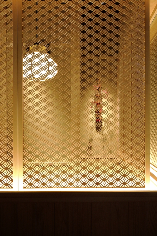 また、店内からの千本格子からみる重なって観える組木との複雑さは、