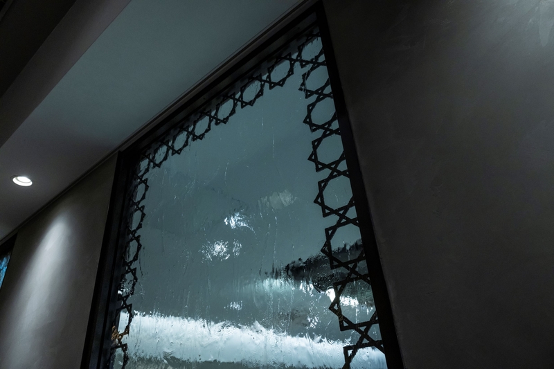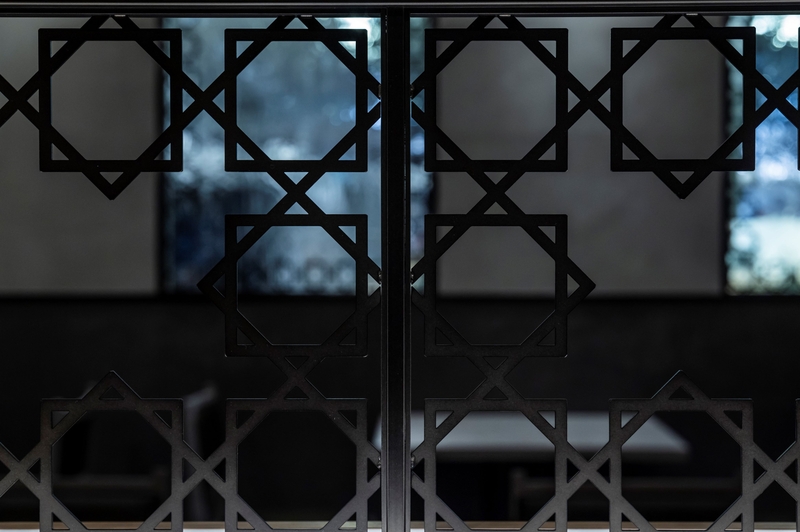 茶寮部のファサードにはアンティークガラスを設け、通路を歩く人と客席にいる人との目が合わないように考えた。