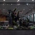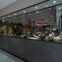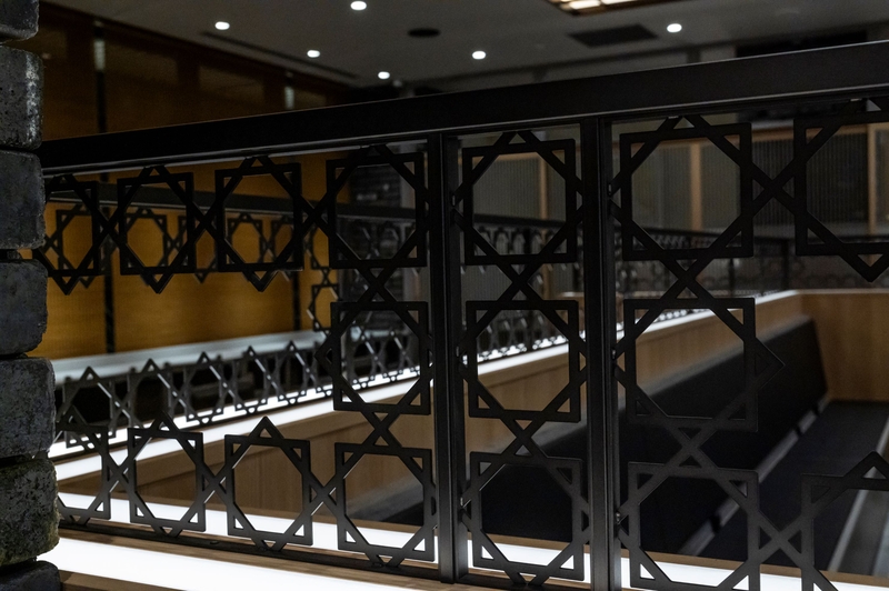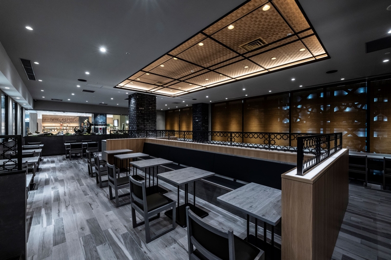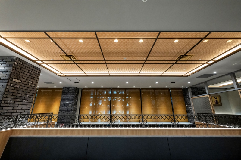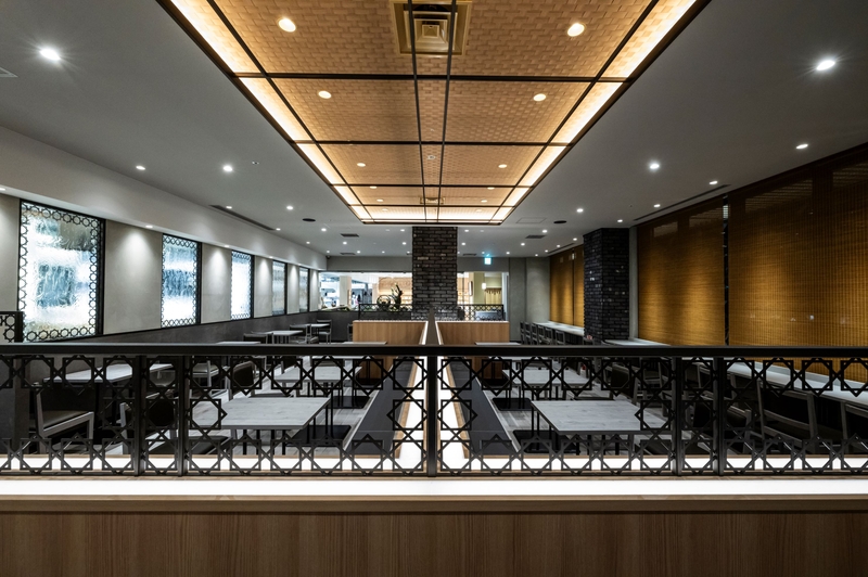 天井部には網代天井や個室の一室には以前の茶寮の色の小豆色を用い、以前からの顧客が茶寮都路里を感じれる空間を考えた。