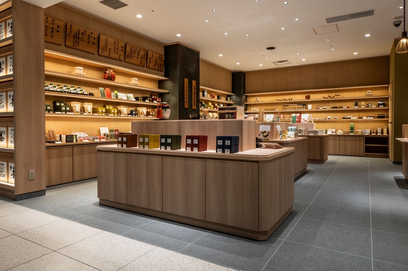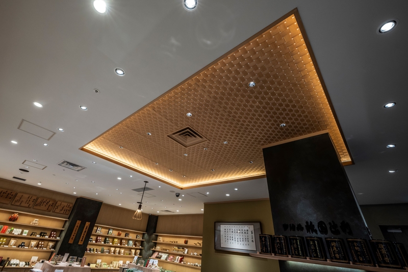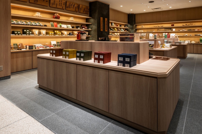 物販部のファサードには本店で使っている茶箱を用いてアイコンに。