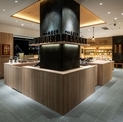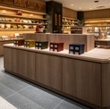 カウンターでは試飲ができるだけでなくレジカウンターも隣接し、スタッフ動線を考えた。