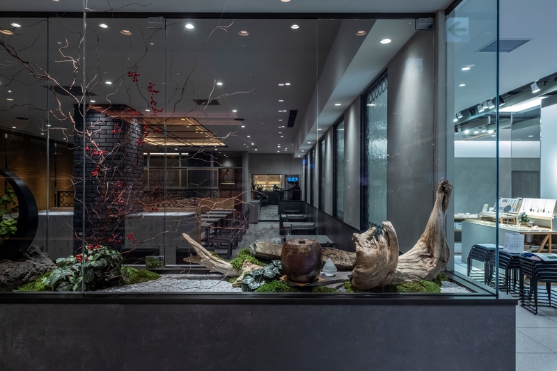 内部は茶寮の新しい「色」としての灰色をベースにデザインした。